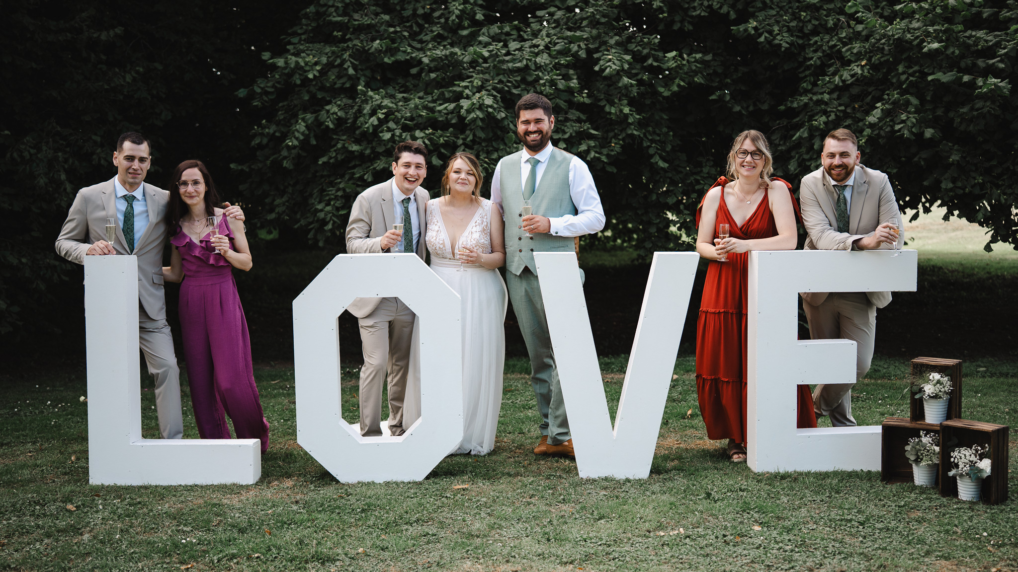 Les photos de groupe ! Ce moment, nous le préparons le jour du rdv de préparation de votre mariage afin de pouvoir optimiser le timing, que l'on oublie personne et que vous puissiez profiter au maximum de votre vin d'honneur/cocktail !